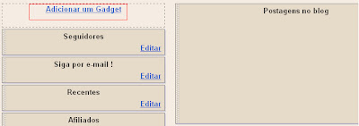 1° Passo, Vá em design, depois escolha onde quer botar a página então clique em "Adicionar um Gadget"